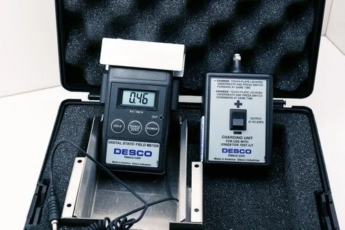 Alquiler de Kit profesional para verificar el desempeño de ionizadores, midiendo campo electrostático y capacidad de neutralización de carga.